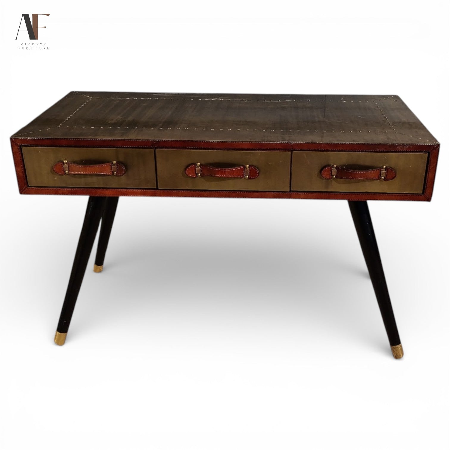 BRASS AND LEATHER DESK
